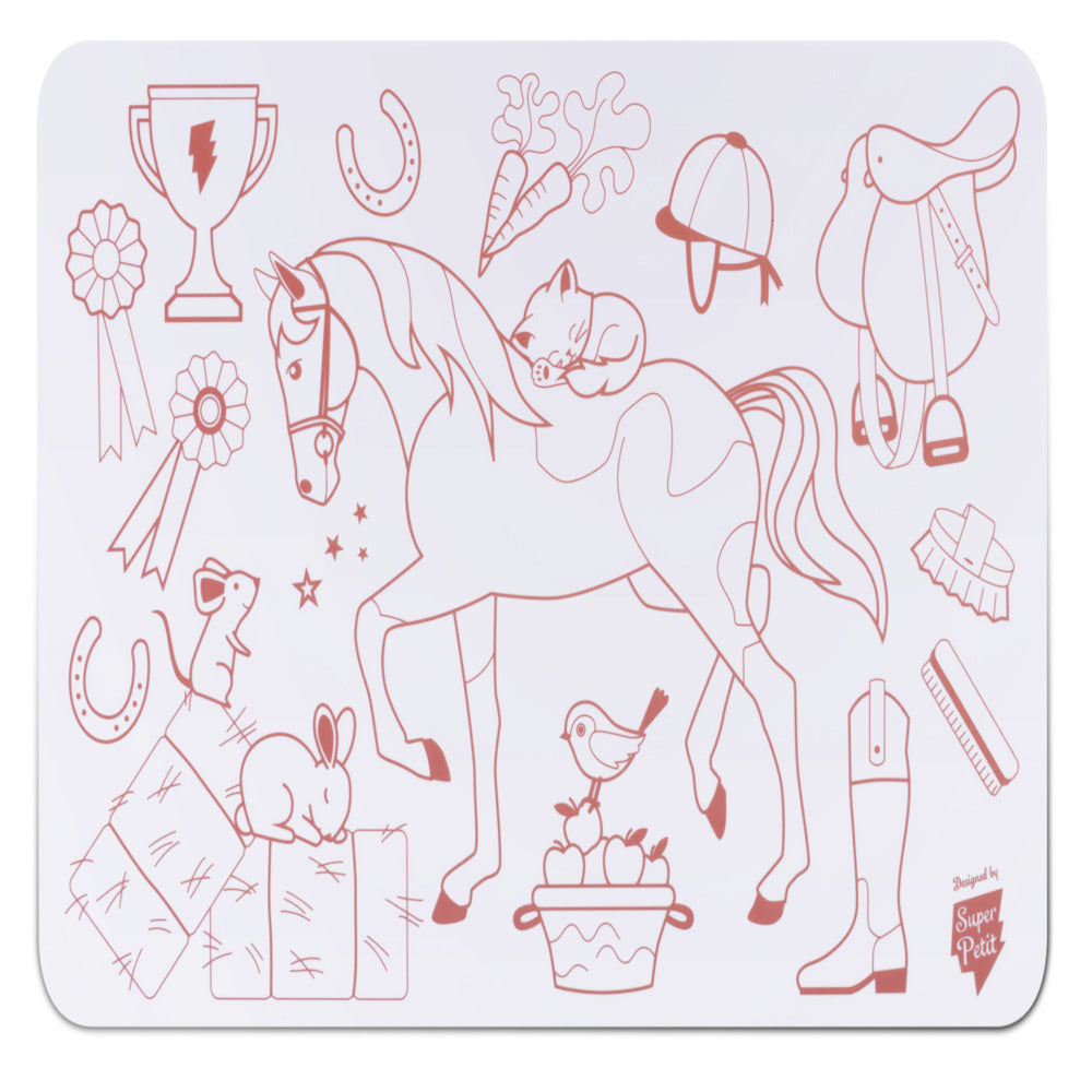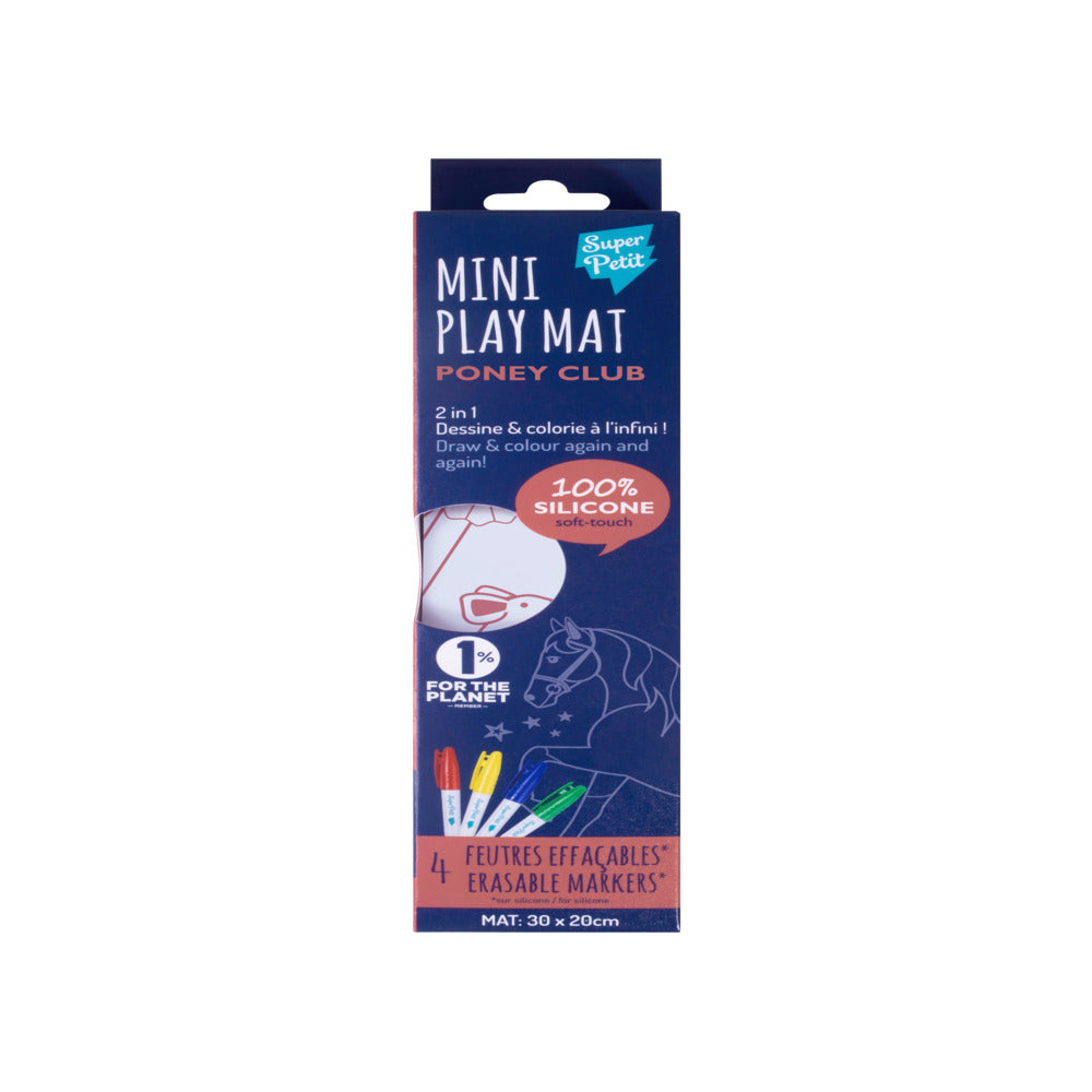 Includes: 1 mini reversible silicone playmat and 4 dry-erase markers